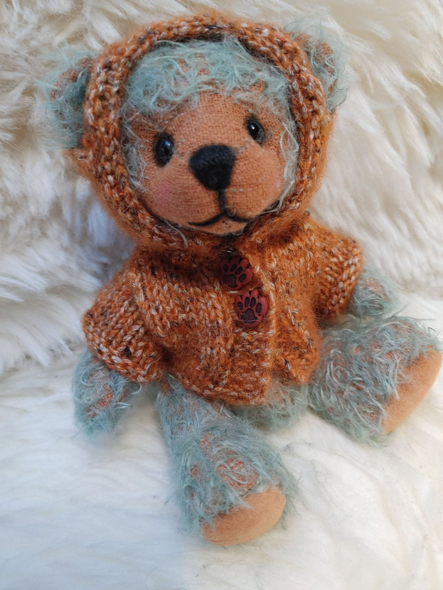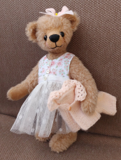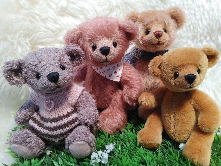 Ein Stoff, ein Bild, eine Geschichte usw. wecken das Bild eines Bärchens in mir. Oft entsteht dadurch ein neuer Schnitt oder ich variiere einen vorhandenen. Ich wähle den dafür geeigneten Stoff aus, denn jede Stoffart hat ihren eigenen Charakter. Wenn alles zu meinem Bild passt (Größe, Länge, Art der Beine usw.), male ich den Schnitt auf den Stoff, schneide zu, nähe zusammen und stopfe es mit Synthetikwatte, Schafwolle und Granulat. Viele Bärchen erhalten für die bessere Beweglichkeit der Arme noch eine Drahteinlage. Nach ca. 8 bis 10 Stunden, bei den Großen auch mehr als 18 Stunden, bin ich mit dem Bärchen zufrieden. Ich statte es mit individuellen Accessoires (selbst genähter Kleidung, Schal, Hüte und dergleichen) aus. Ich fotografiere das Ergebnis und stelle es zu den anderen Bärchen, bilde Kleingruppen, Pärchen oder Individualisten. Fertig!